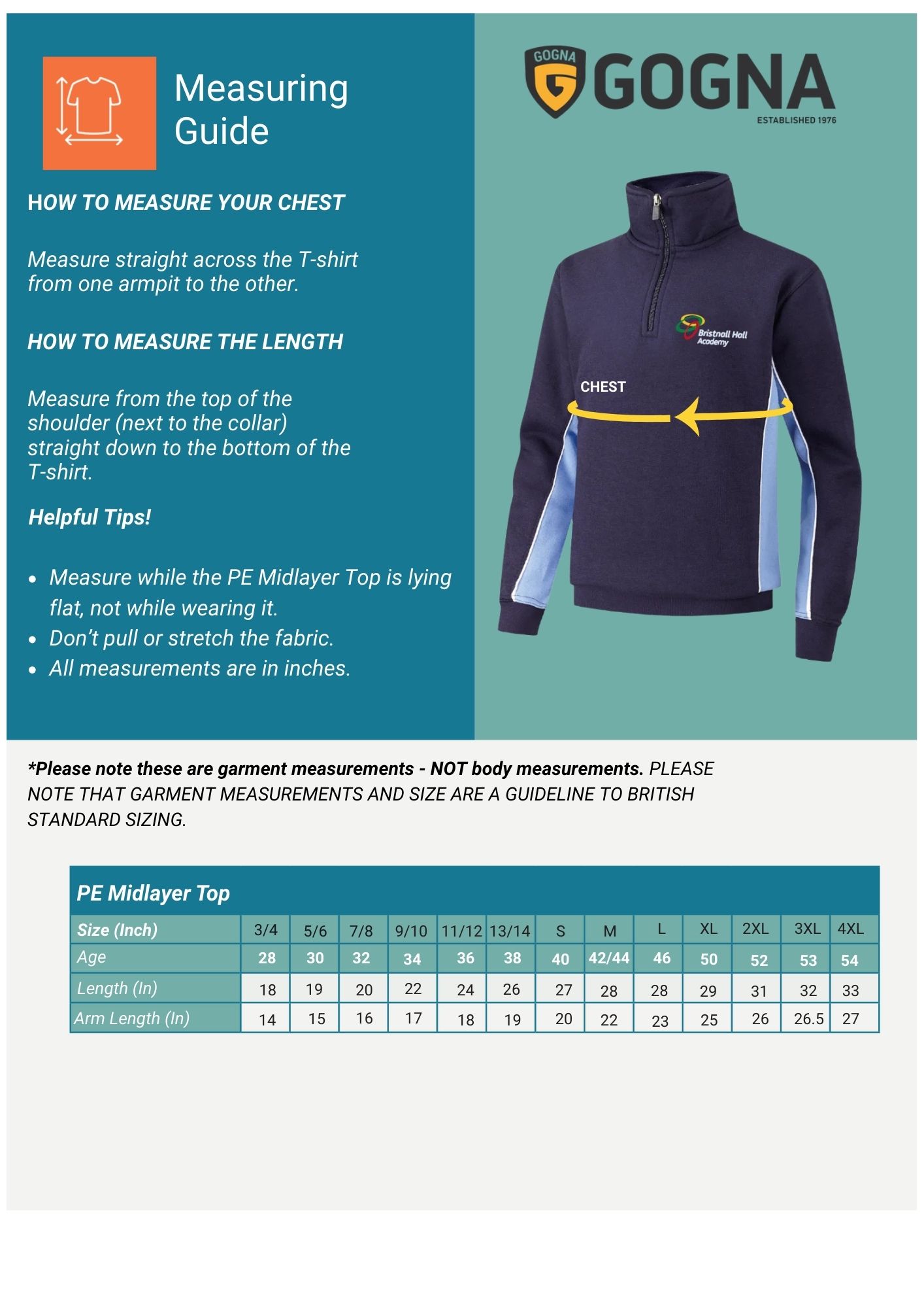 New Mid layer top size guide
